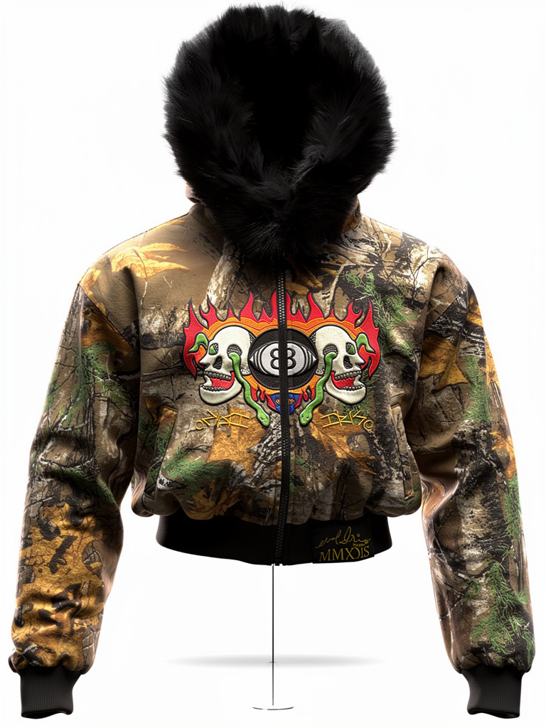 "8 Ball" Camo/ Black Sherpa Reversible Jacket